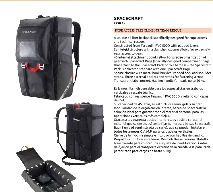 产品名称:CAMP/坎普 2790 SPACECRAFT 存放绳索和技术救援装备 全新改良设计45升装备包