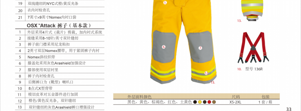热防护系数TPP245, THL值: 215,滕盖和肩部耐压热传导防护性CCHR>25, DRD拽拉 救援带断裂强力> 7KN