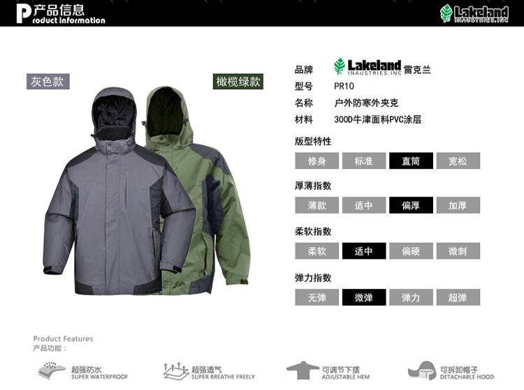 LAKELAND/雷克兰 853040 PR10 防寒保暖 户外防寒外夹克